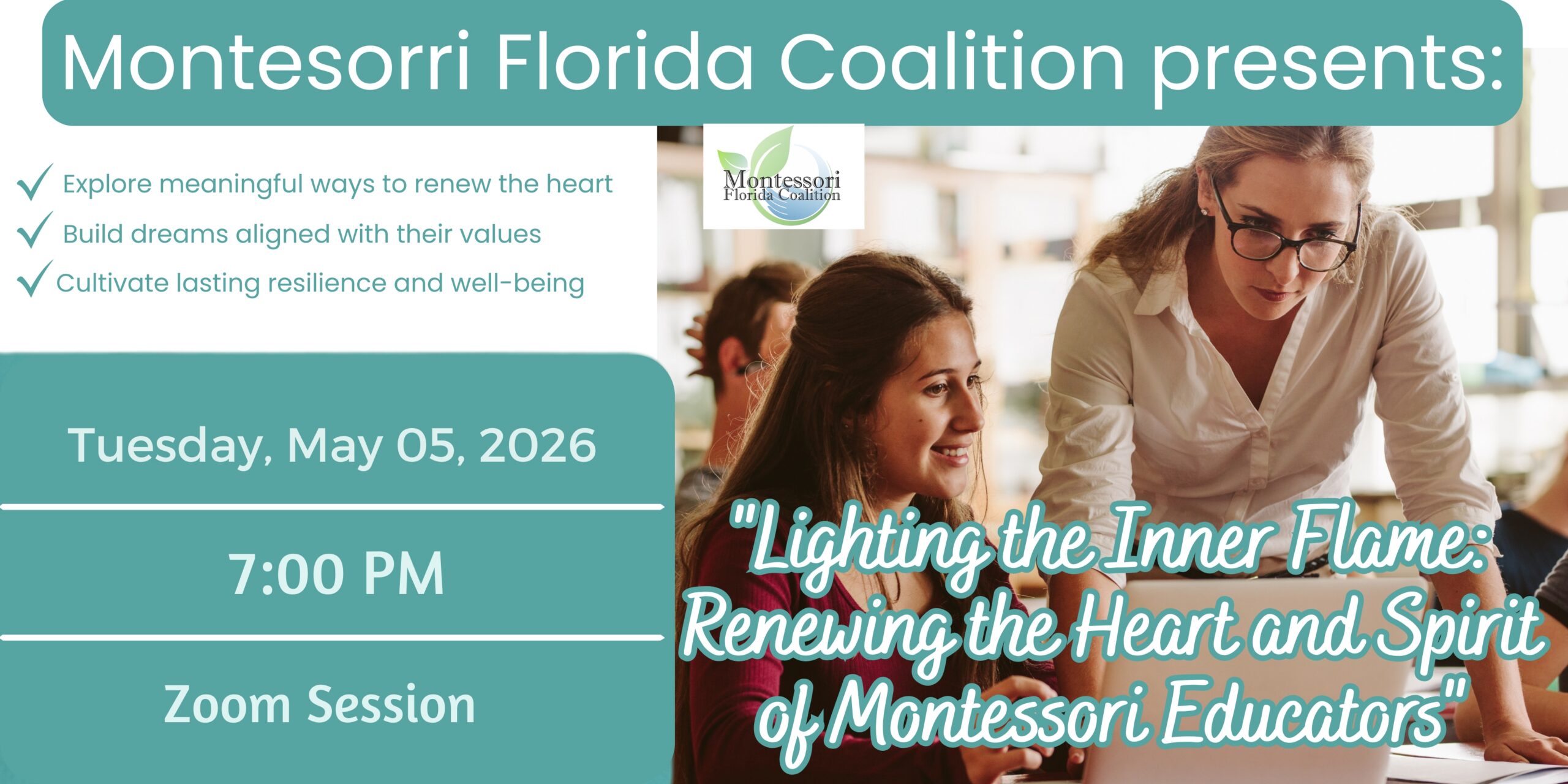In recognition of Mental Health Awareness Month, this inspiring session invites Montessori educators to move beyond temporary self-care and reconnect with their deeper purpose that called them to teach. Rooted in Montessori principles, participants will explore meaningful ways to renew the heart, build dreams aligned with their values, and cultivate lasting resilience and well-being—empowering them to thrive both personally and professionally while continuing to inspire the children they guide.